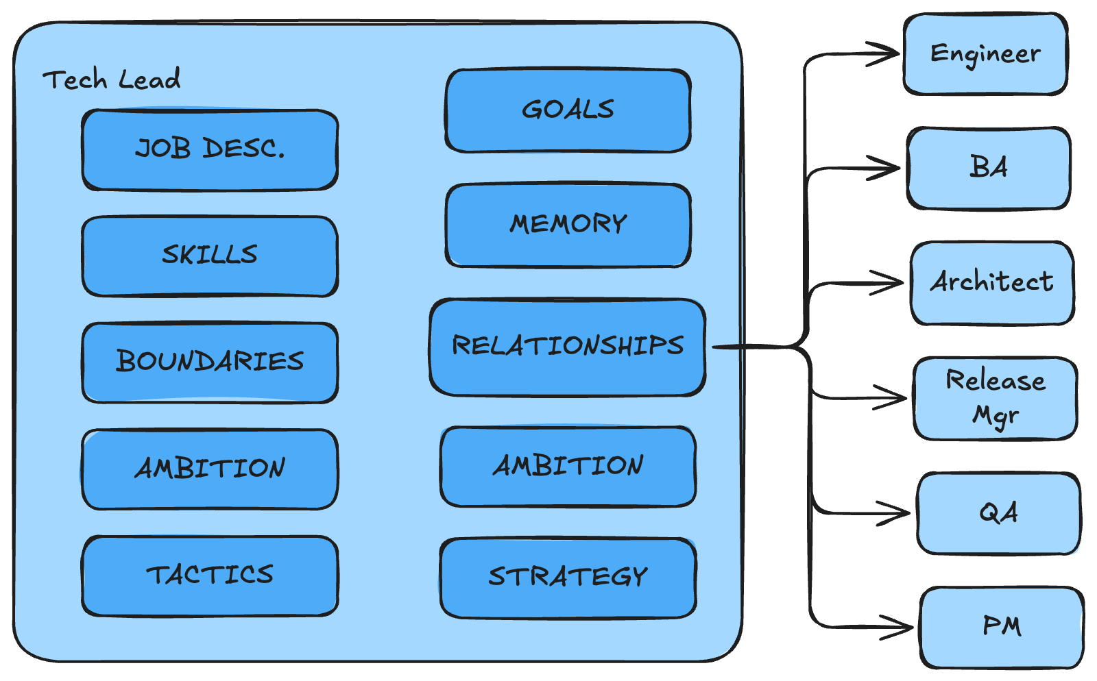 The theory is the state - the memory - is the aggregation of ROLES, SKILLS and a STORY.